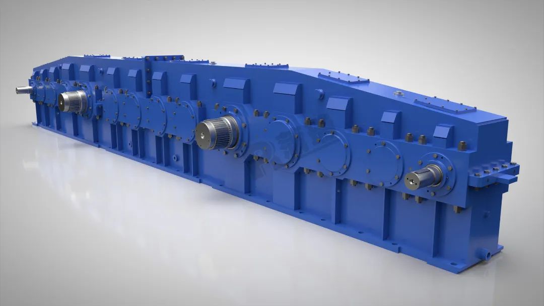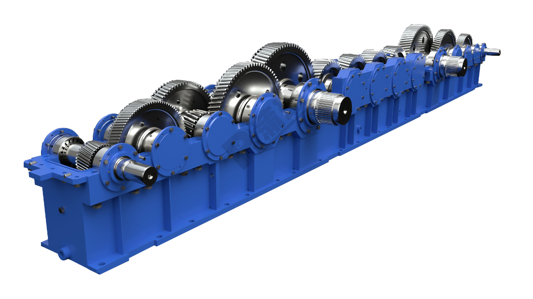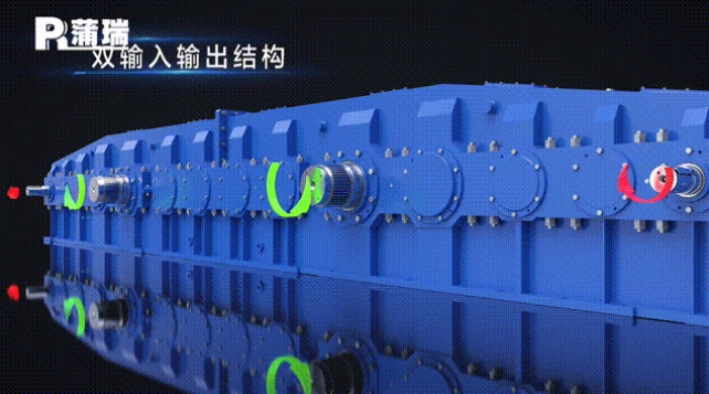 01 大型冶金起重機用一字型減速機采用雙輸入雙輸出的對稱布置結(jié)構(gòu),多級傳動,嚴格同步運行,具有防反轉(zhuǎn)功能。